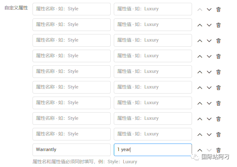 分两部分,一部分是官方预设的属性,一部分是自己填写的属性